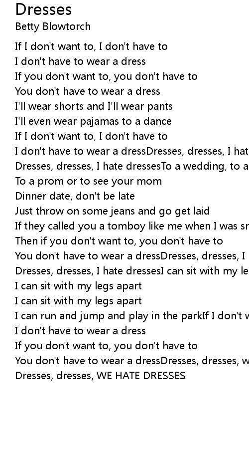 I don't have to wear a dressDresses, dresses, I hate dresses |