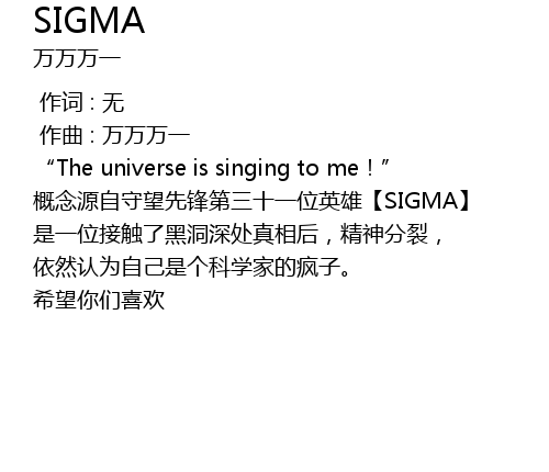 | [00:06.674] | 概念源自守望先锋第三十一位英雄【SIGMA】 |