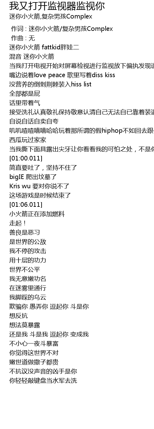 | [01:32.011] | 你轻轻敲键盘当水军去洗 |