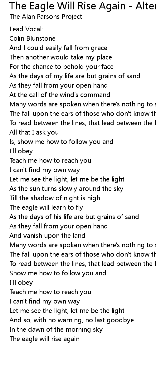 The Eagle Will Rise Again - Alternate Version - Backing Track Lyrics