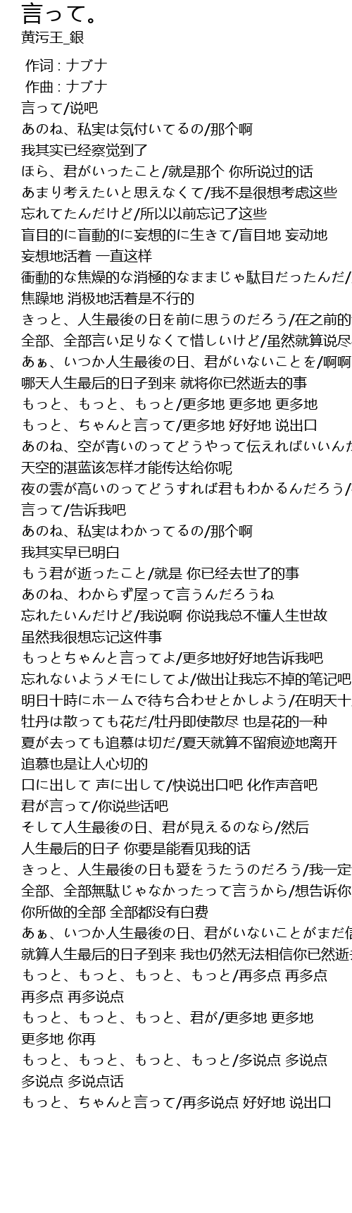 | [03:56.39] | もっと、ちゃんと言って/再多说点 好好地 说出口 |