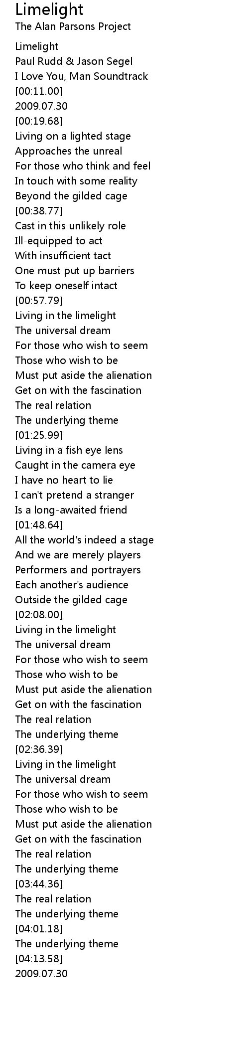 Limelight Lyrics
