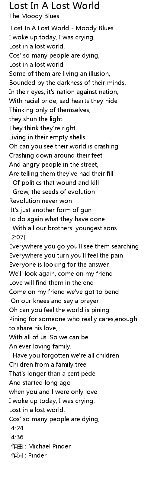 | [0:37] | Lost in a lost world, |