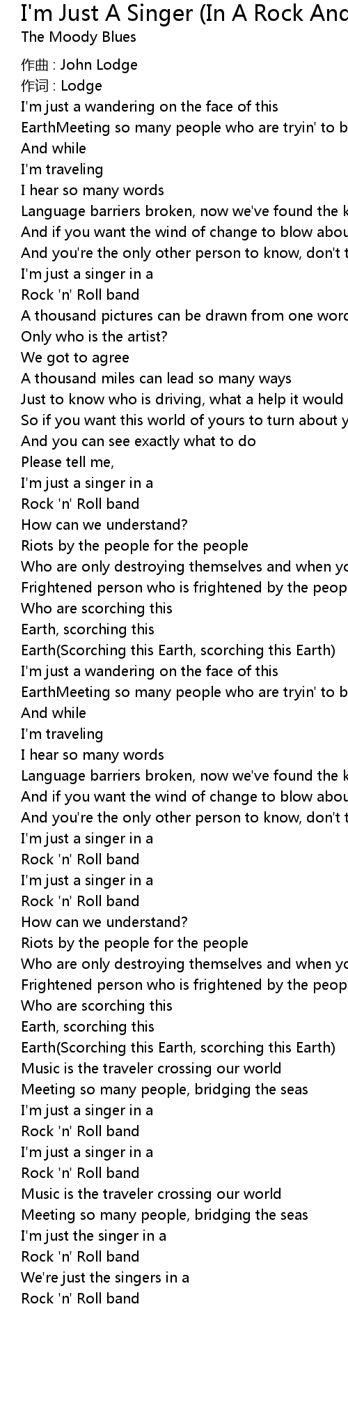| Song | I'm Just A Singer (In A Rock And Roll Band) |