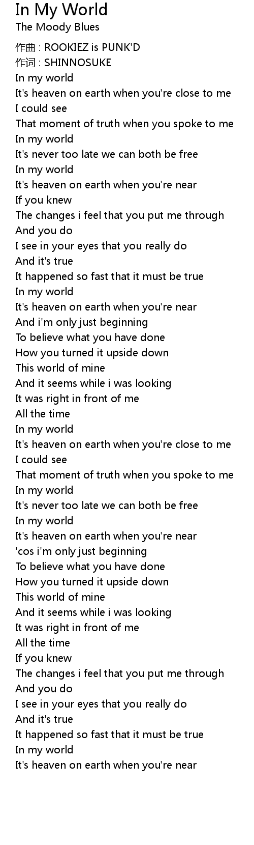 | Song | In My World |