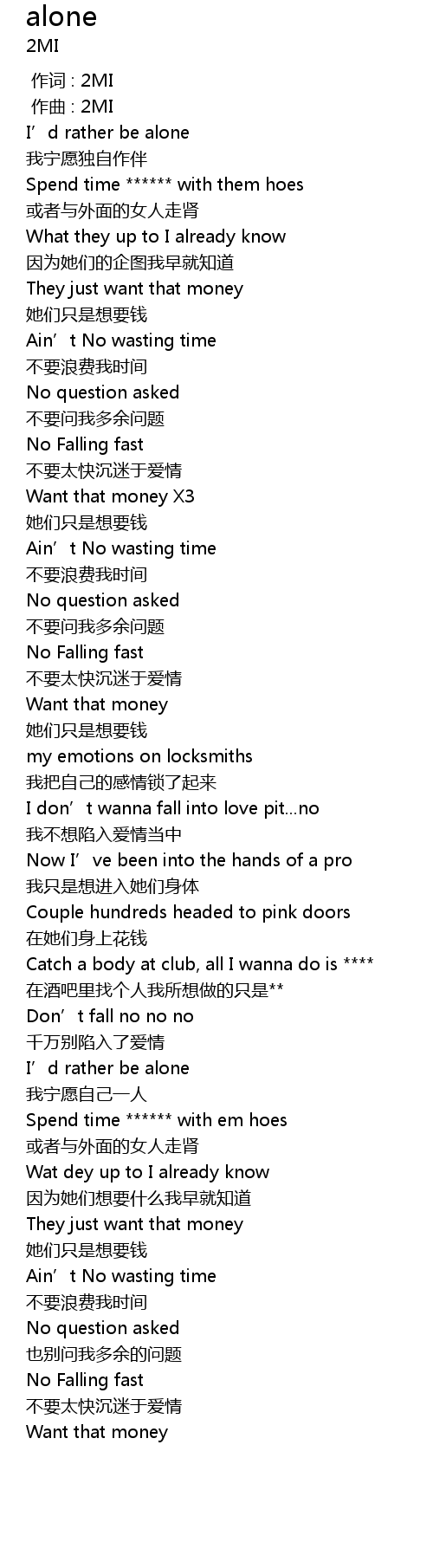 | [00:18.654] | I' d rather be alone |