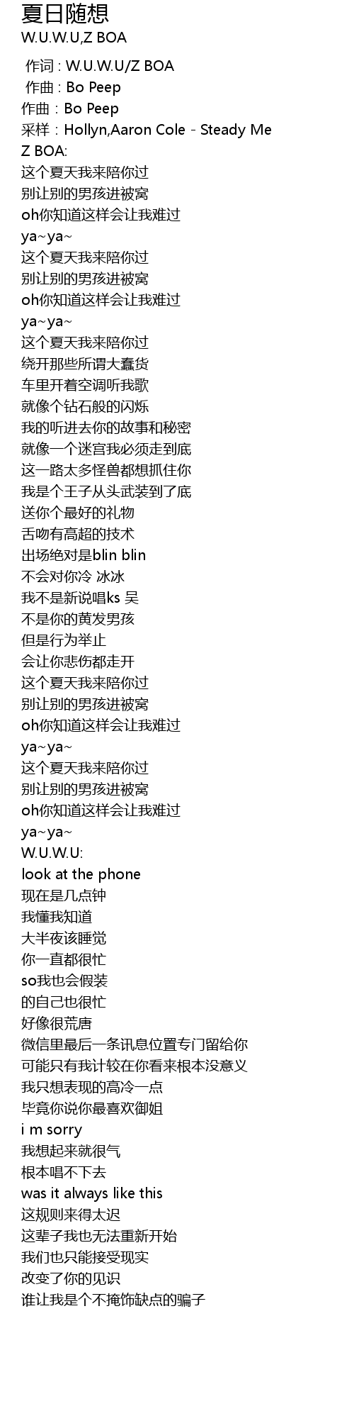 | [00:00.000] | 作词 : W.U.W.U/Z BOA |