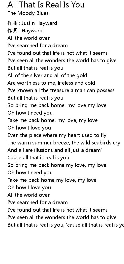 | Cause all that is real is you | |