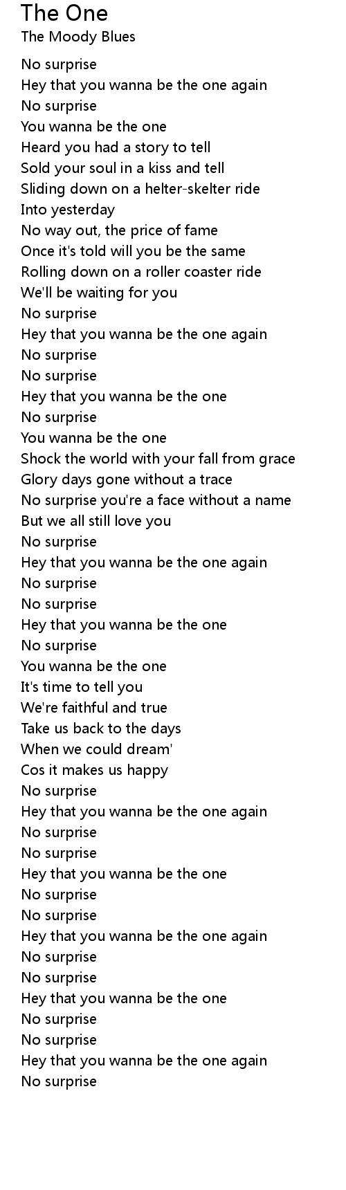 Hey that you wanna be the one again |