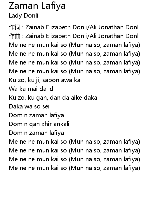 | 作词 : Zainab Elizabeth Donli/Ali Jonathan Donli | |
