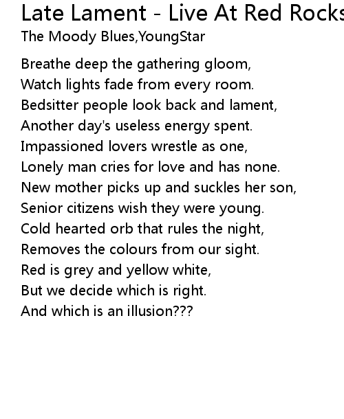 | Song | Late Lament - Live At Red Rocks/1982 |