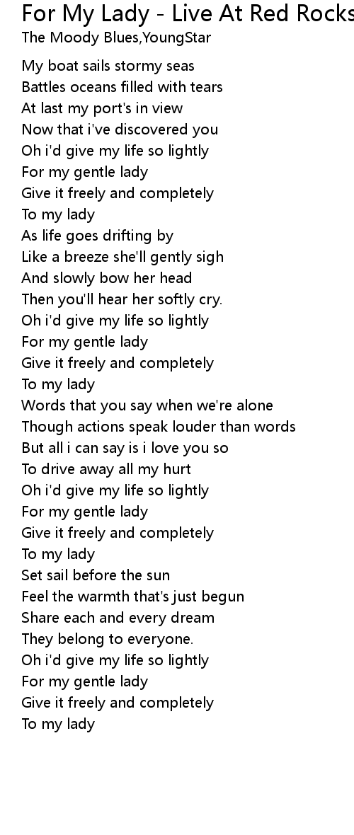 For My Lady - Live At Red Rocks/1982 Lyrics