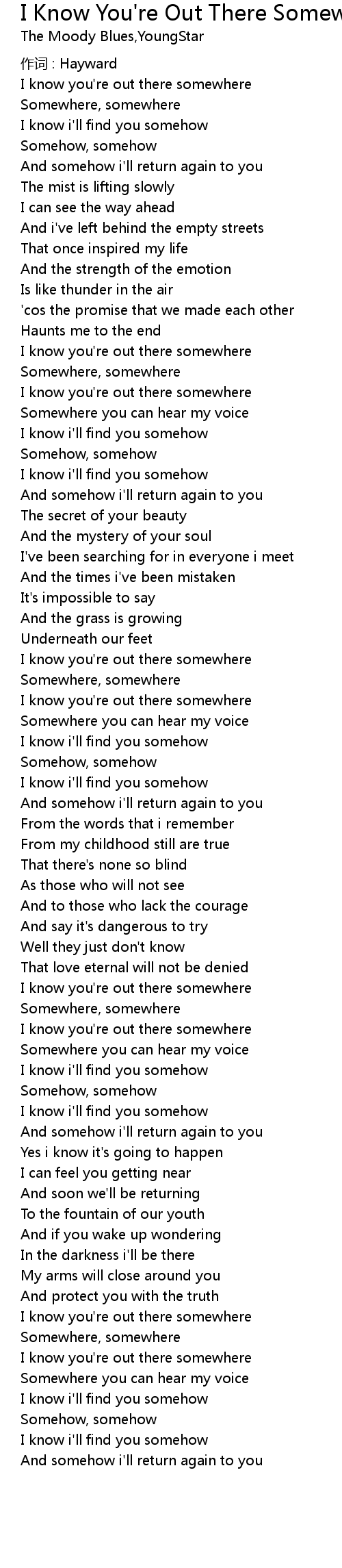 | Song | I Know You're Out There Somewhere - Live At Red Rocks/1982 |