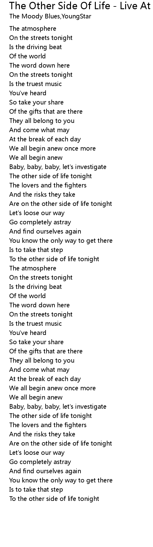To the other side of life tonight |
