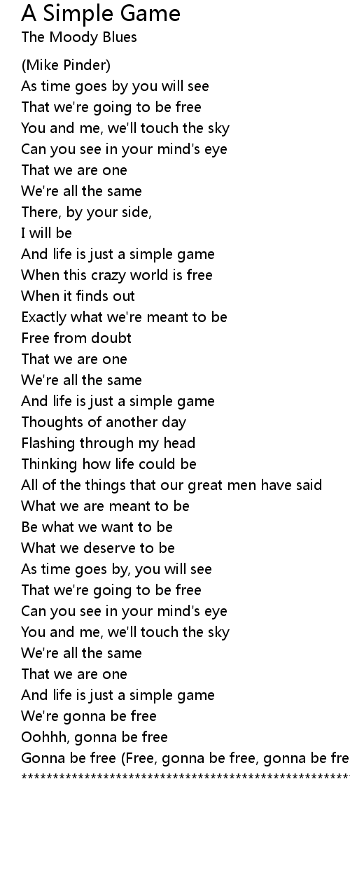 And life is just a simple game |