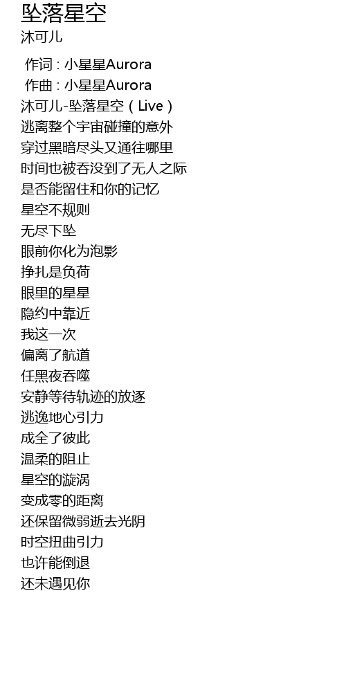 | [00:00.114] | 沐可儿-坠落星空(Live) |