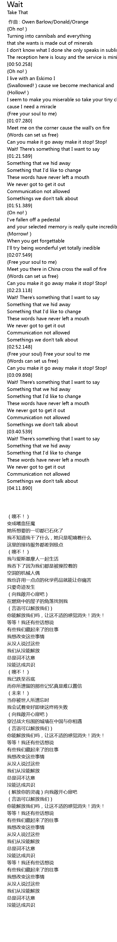 | [00:00.00] | zuò qǔ : Owen Barlow Donald Orange |