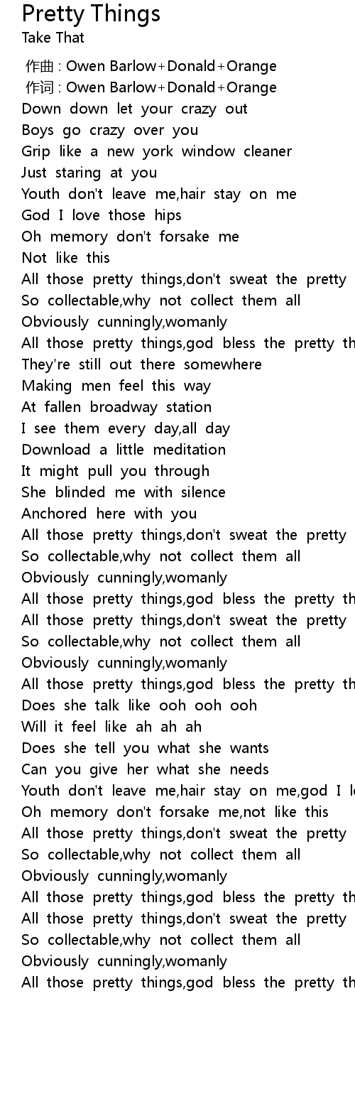 | [03:03.03] | All those pretty things, don' t sweat the pretty things |