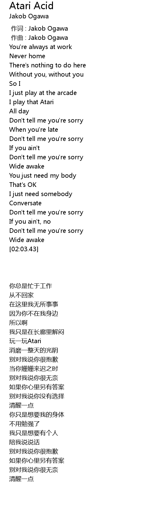 | [00:00.00] | 作词 : Jakob Ogawa |