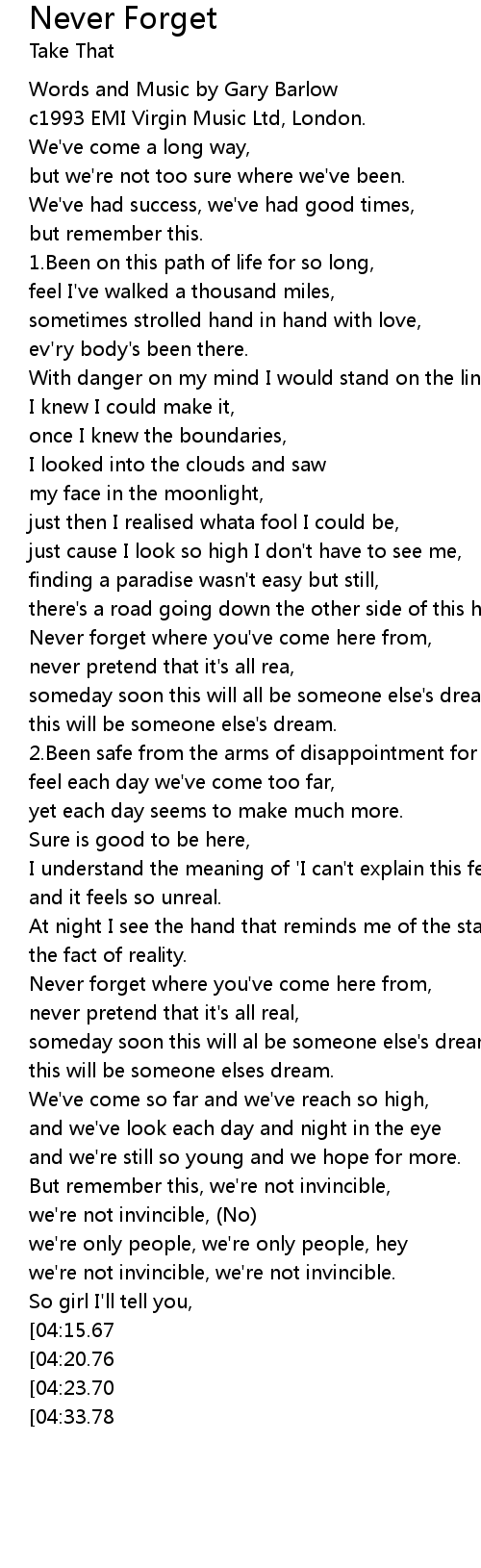 Words and Music by Gary Barlow |
