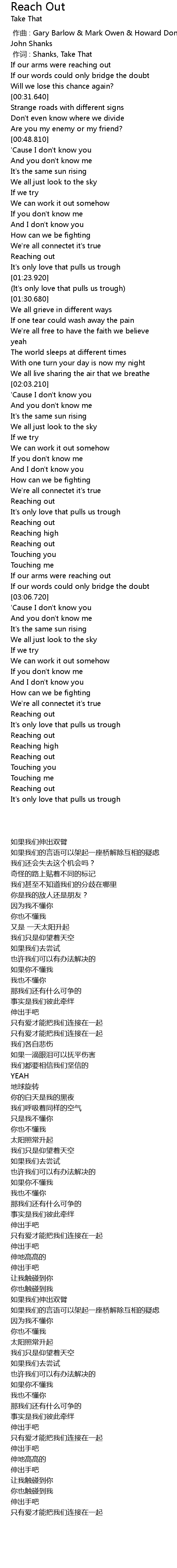 | [00:01.00] | 作词 : Shanks, Take That |