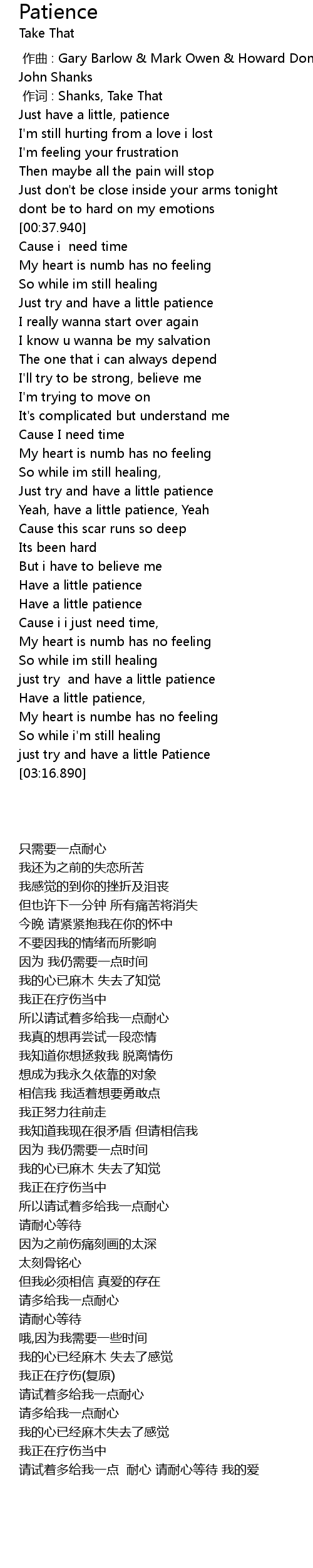 | [02:00.980] | Yeah, have a little patience, Yeah |