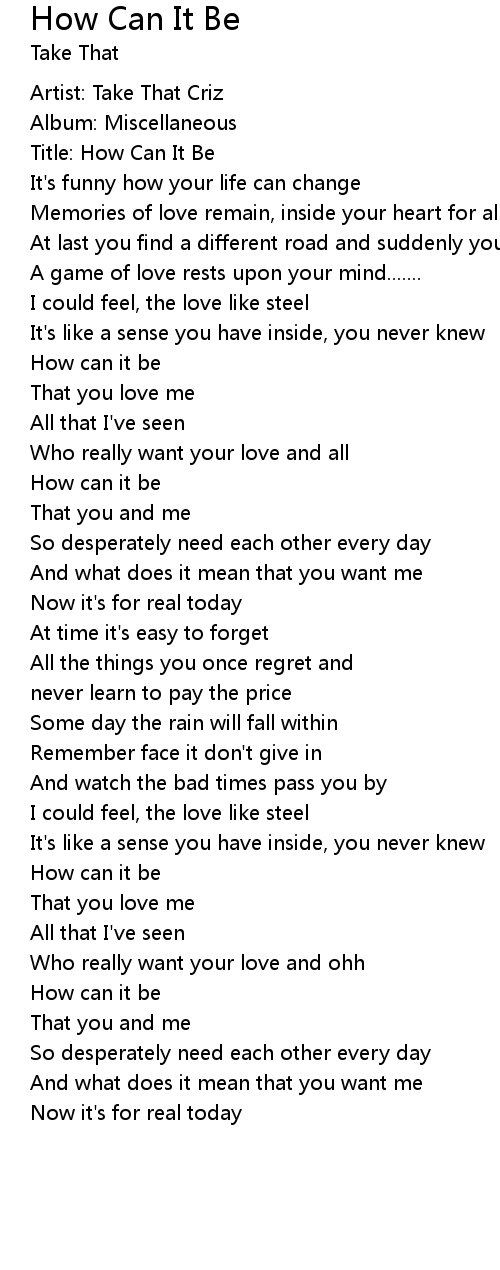 Title: How Can It Be |