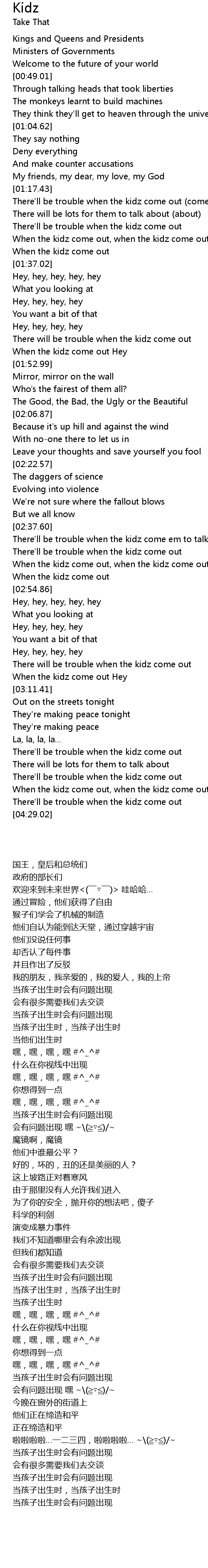 | [01:30.01] | When the kidz come out, when the kidz come out |