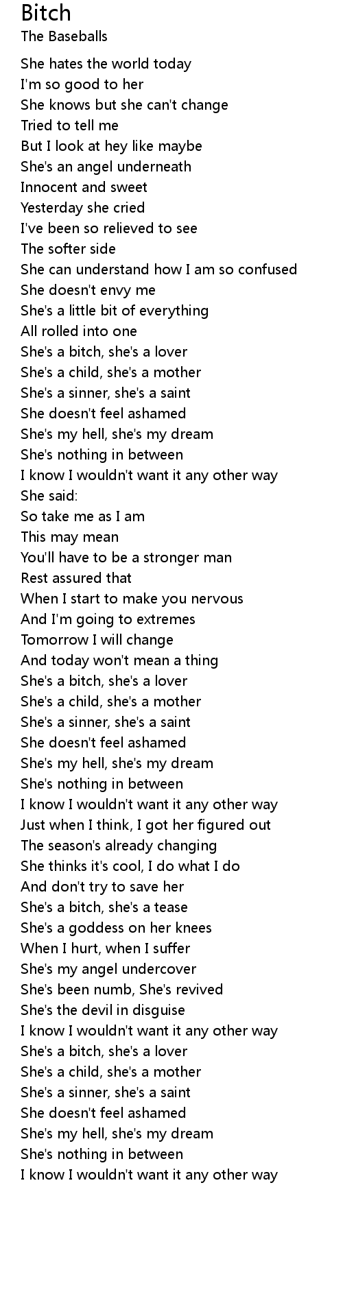 She's a bitch, she's a lover |