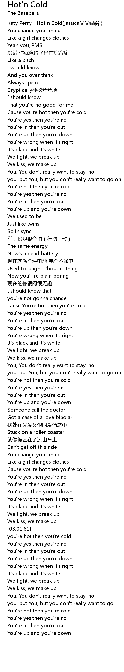 | [00:02.09] | Katy Perry: Hot n Cold jassica you you bian ji |
