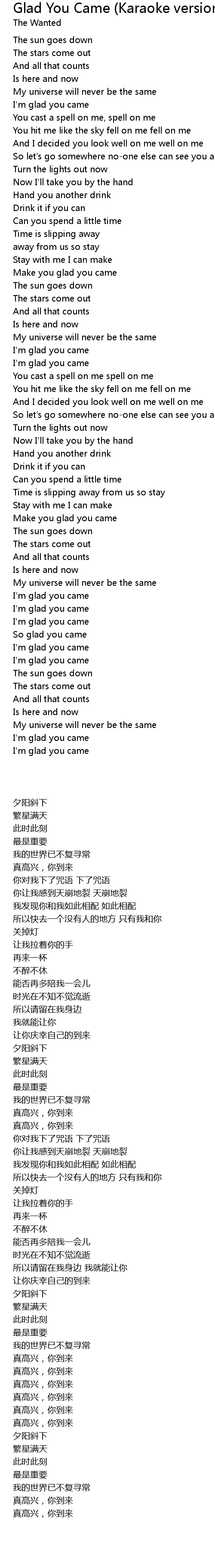 Glad You Came (Karaoke version) - Karaoke version Lyrics