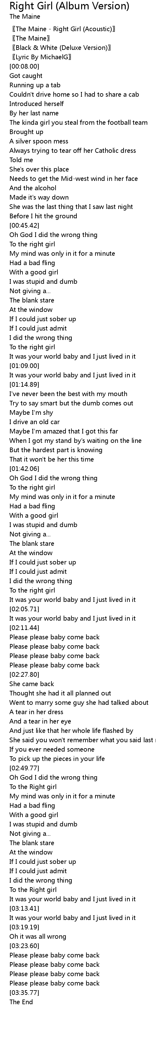 | [00:01.50] | 〖The Maine - Right Girl (Acoustic)〗 |