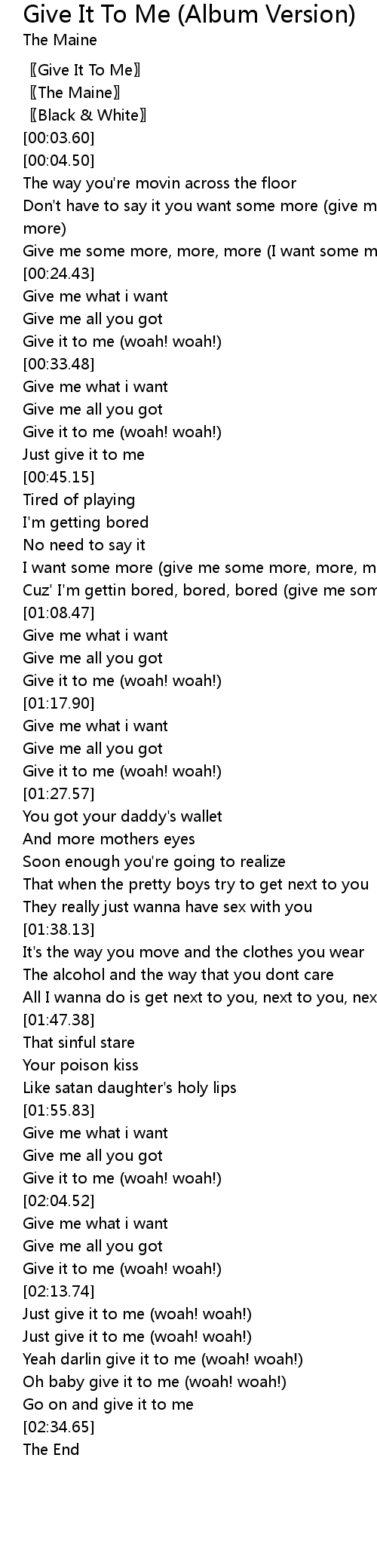 | [02:27.50] | Oh baby give it to me (woah! woah!) |