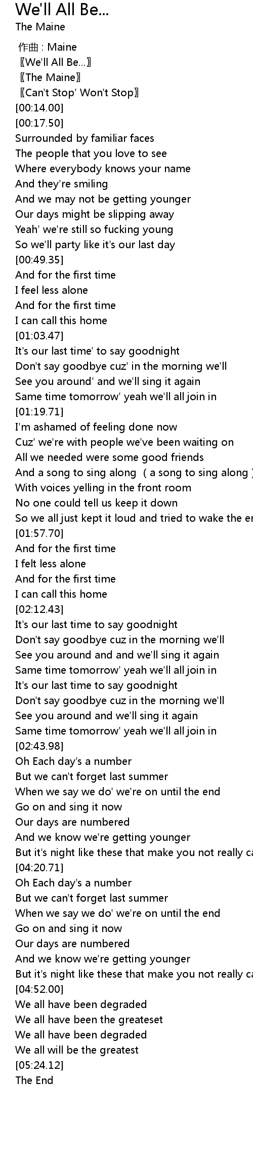 | [02:40.21] | Same time tomorrow' yeah we' ll all join in |