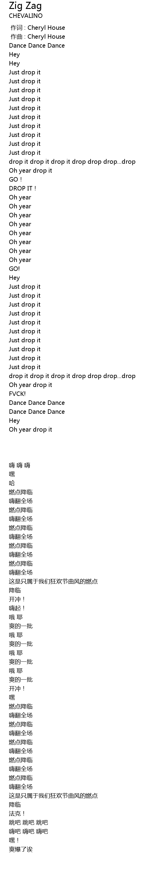 | [00:00.000] | zuò cí : Cheryl House |