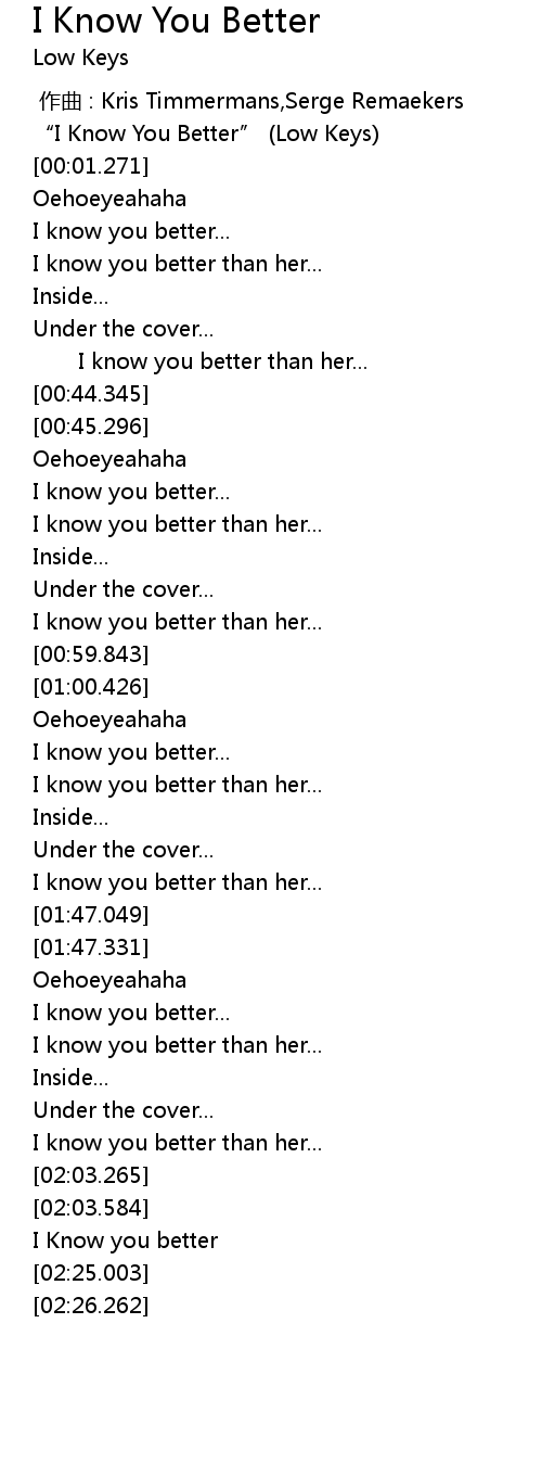 | [00:00.000] | “I Know You Better” (Low Keys) |
