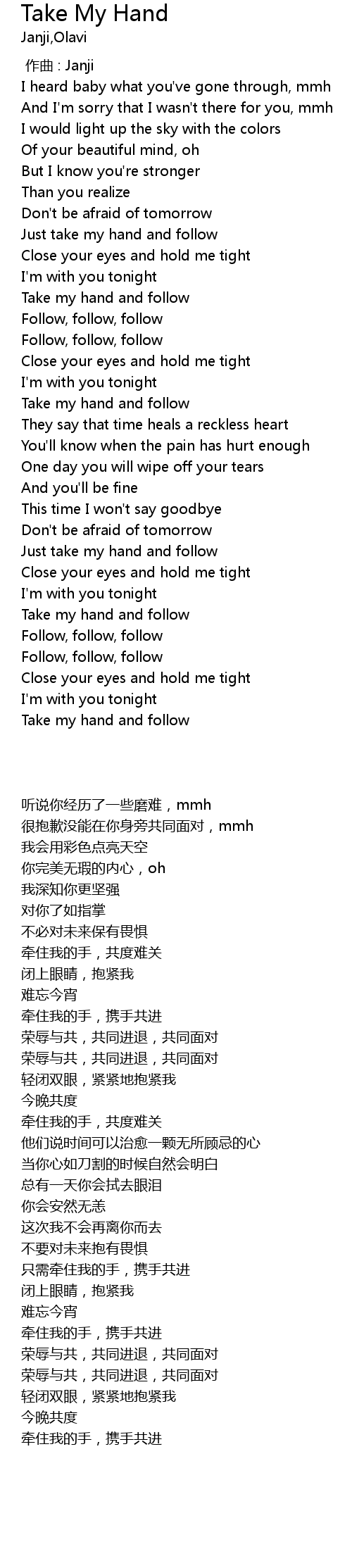 | [02:14.139] | Just take my hand and follow |