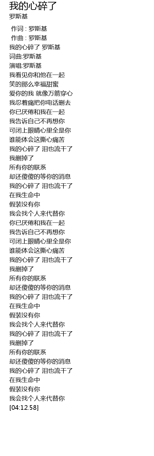 | [00:02.58] | 我的心碎了 罗斯基 |