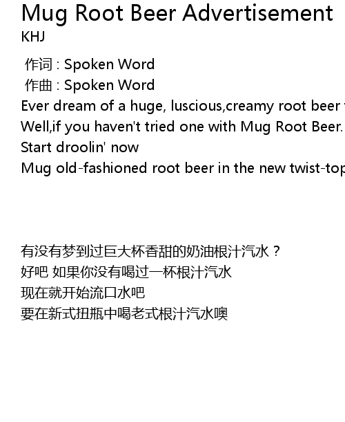 | [00:02.200] | Well,if you haven't tried one with Mug Root Beer. |