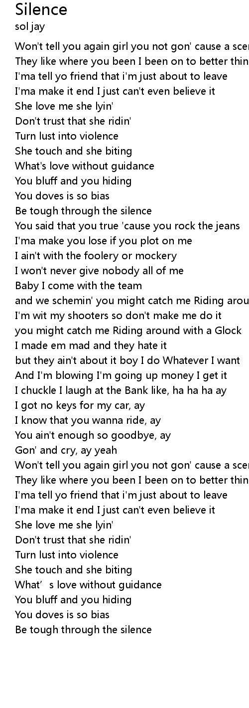 | [00:24.59] | Won' t tell you again girl you not gon' cause a scene |