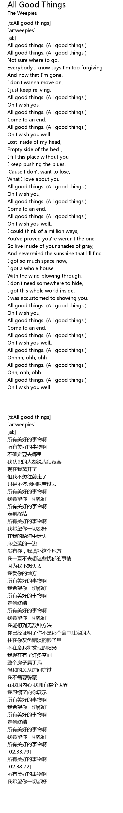 | [02:36.33] | All good things. (All good things.) |