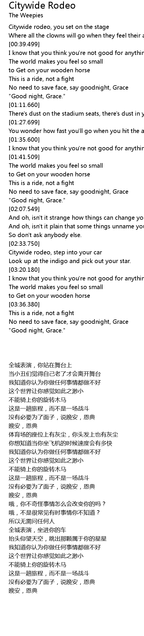 | [03:43.100] | No need to save face, say goodnight, Grace |