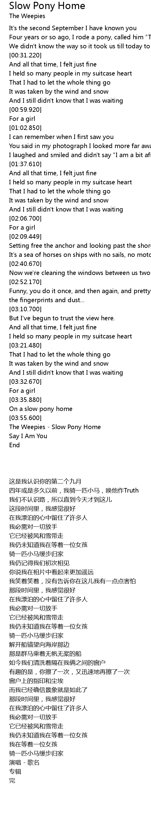 | [03:56.370] | The Weepies Slow Pony Home |