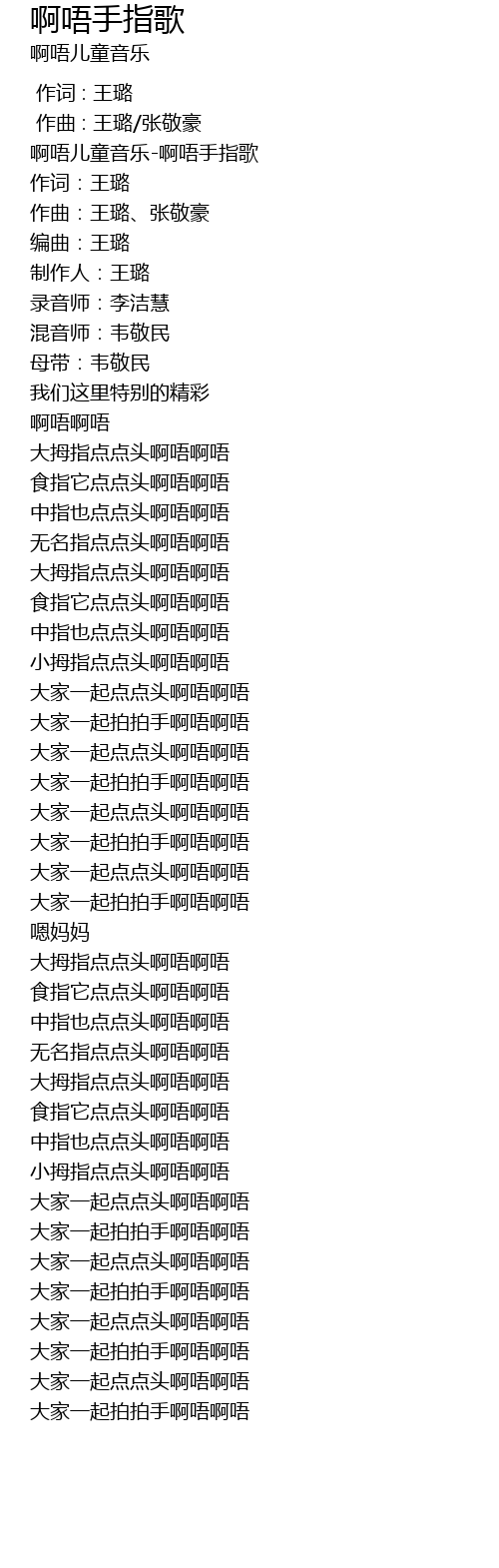 | [00:00.167] | 啊唔儿童音乐-啊唔手指歌 |