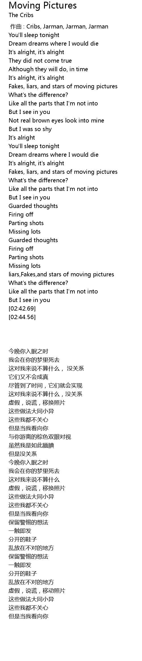 | [00:00.00] | 作曲 : Cribs, Jarman, Jarman, Jarman |