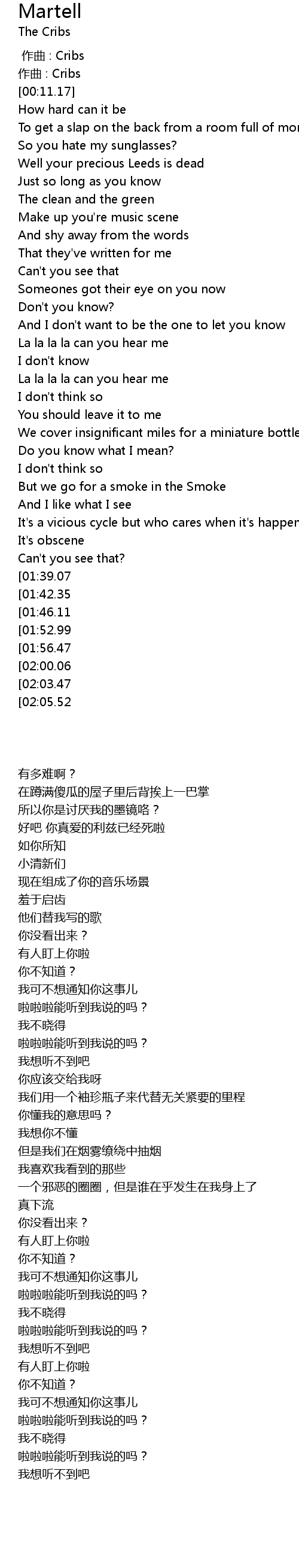 | [00:49.94] | And I don' t want to be the one to let you know |