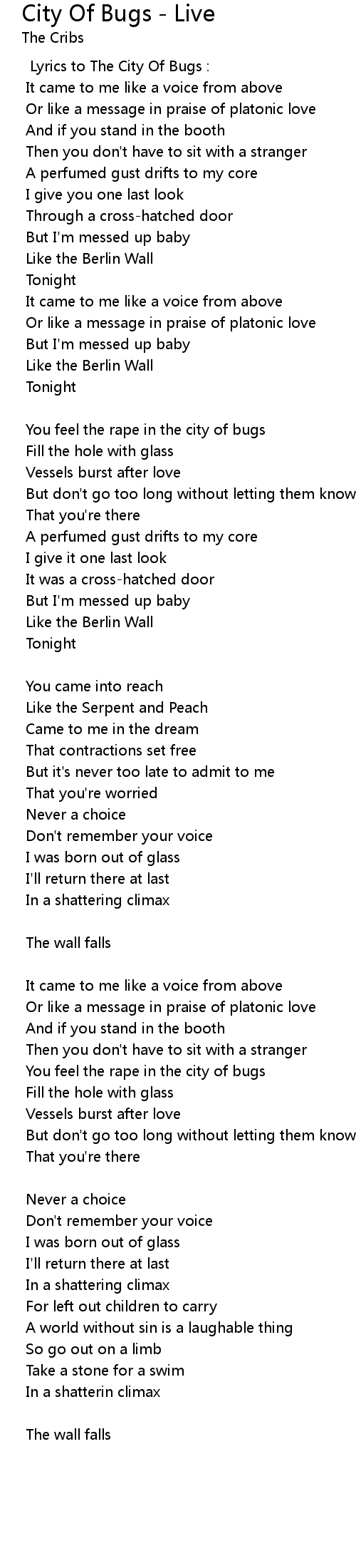 Lyrics to The City Of Bugs : |