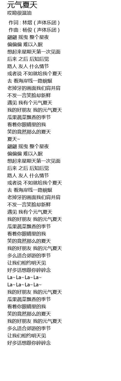 | [01:46.15] | 我的好朋友 我的元气夏天 |