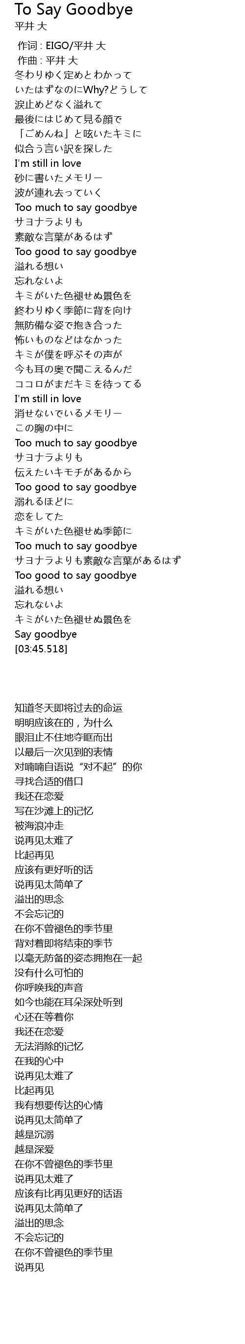 | [03:10.052] | Too much to say goodbye |