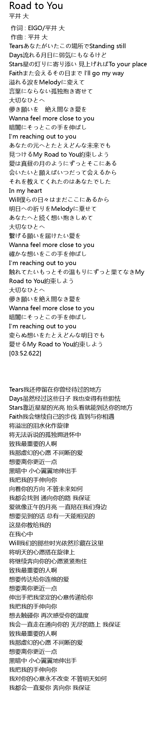 | [01:32.995] | jiàn My Road to You yuē shù |